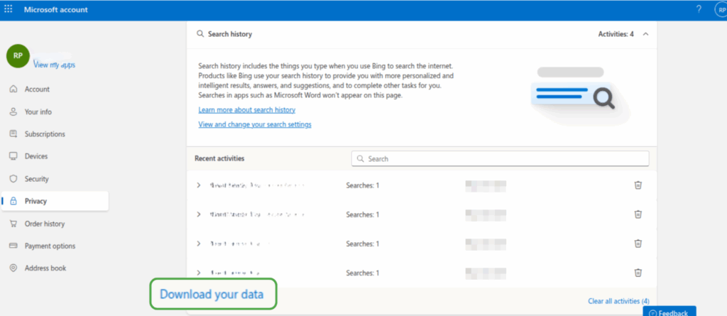 - Manage Microsoft account settings: Check activity settings for more privacy controls.